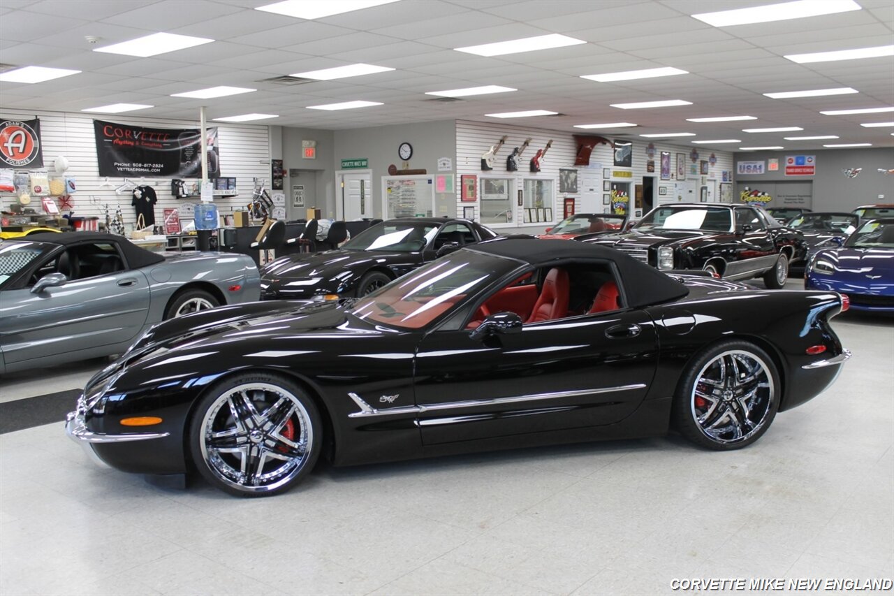 2001 Corvette Commemorative Edition Convertible, Black with a Black top and Torch Red interior, 5.7L 350hp LS1 engine, 4-spd automatic transmission, Z51 Performance handling pkg, G92 perf axle, Active handling, Dual power sport seats, Dual zone air conditioning, Tilt wheel, Power telescopic steering wheel, Head up display, Memory, Bose stereo w/12-disc CD changer, Custom chrome wheels and engine covers, Lowered fully aligned suspension, Incredible fit, finish and craftsmanship and #125 out of 178 produced.......catch and own this beauty at Mecum Kissimmee on Friday, January 16th 2026 LOT F44